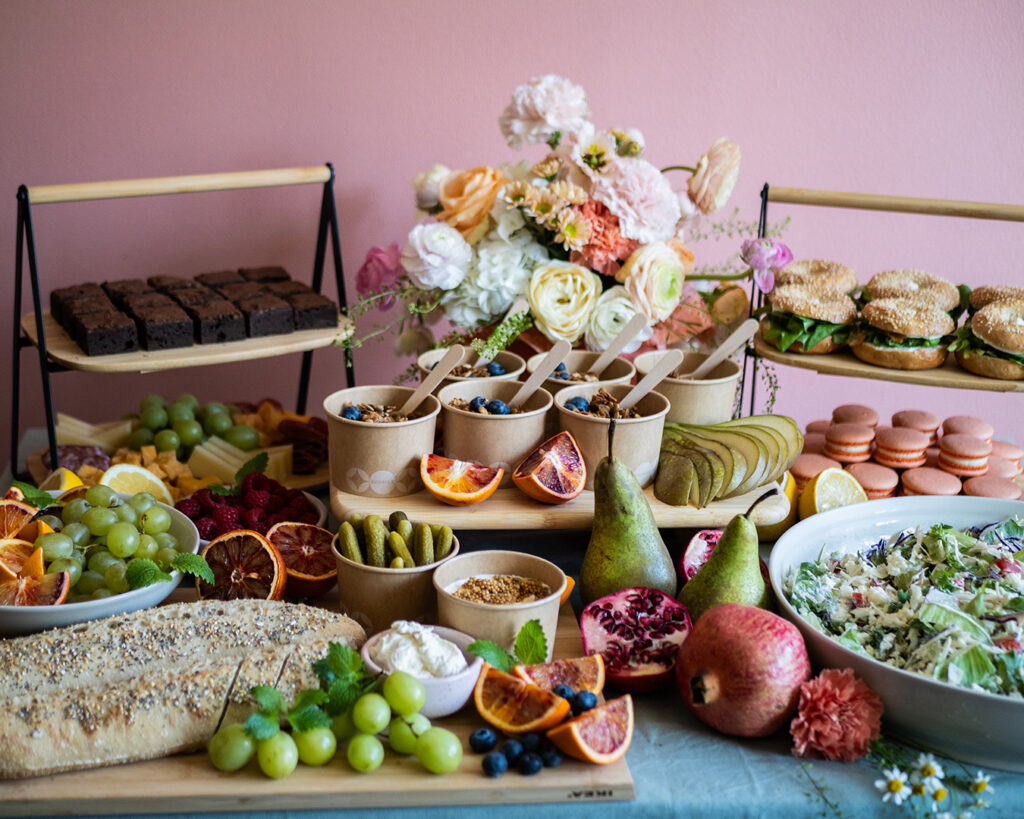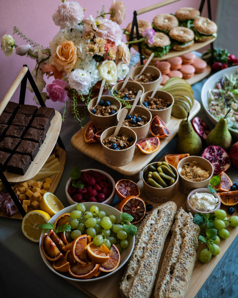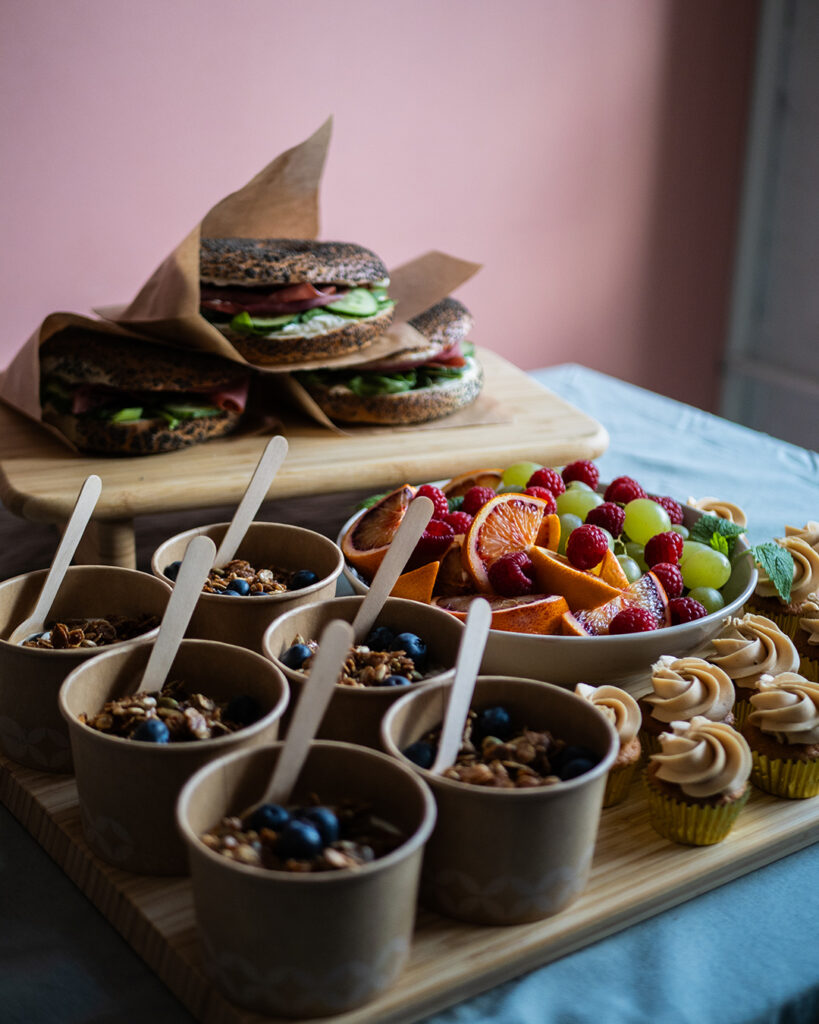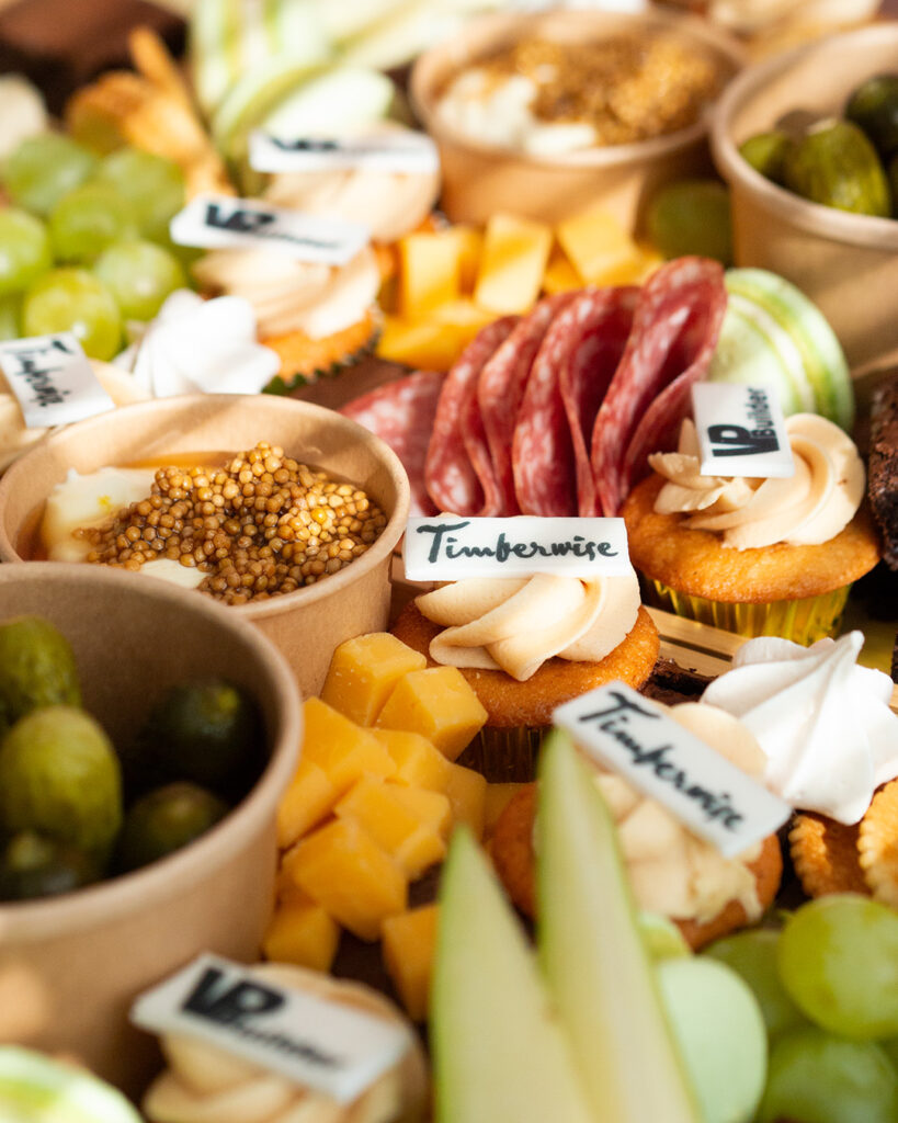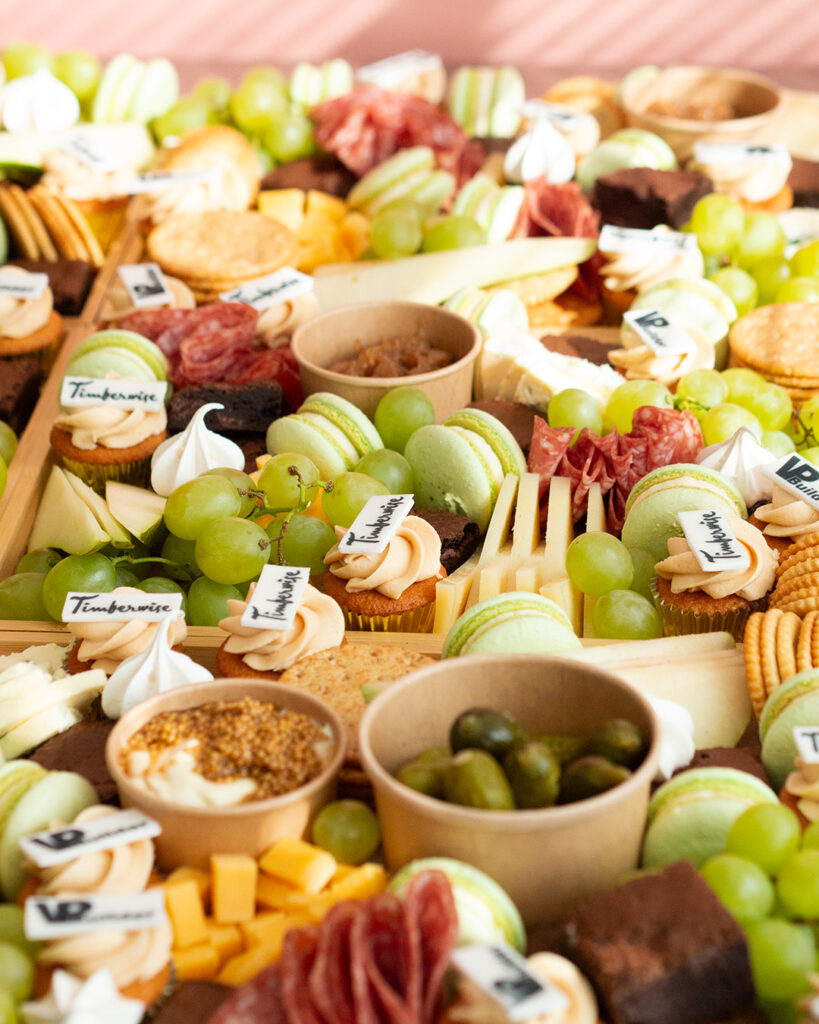 Näyttävä charcuterie tarjoilu sopii juhlaan kuin juhlaan. Tarjoilussa voidaan ottaa huomioon toivomanne värit esimerkiksi macaronien sävyissä sekä mini kuppikakkuihin voidaan lisätä myös syötävä logo päälle. Näin pöytä on sekä kuvauksellinen että herkullinen samaan aikaan. Platteri voidaan toteuttaa joko makeilla herkuilla, suolaisilla herkuilla tai näiden yhdistelmällä.